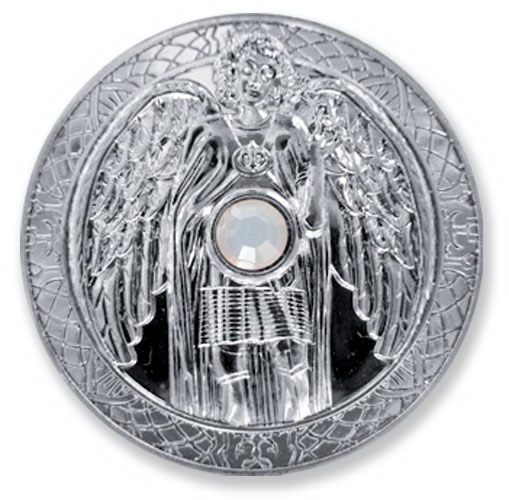 Der Engeltaler ist versilbert mit Dekor aus Swarovski Elements