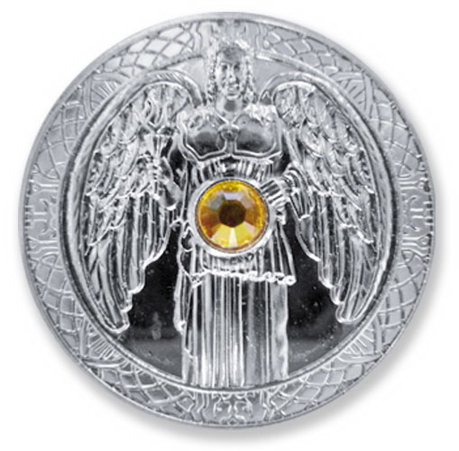 Der Engeltaler ist versilbert mit Dekor aus Swarovski Elements