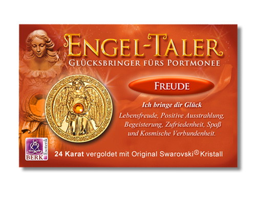 Der Engeltaler ist 24 kt vergoldet mit Dekor aus Swarovski Elements.