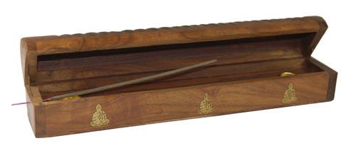 Die praktische Holzbox mit Vorratsbehälter. Im oberen Teil können Sie Räucherstäbchen oder auch Kegel räuchern – sauber verschlossen durch den Deckel.