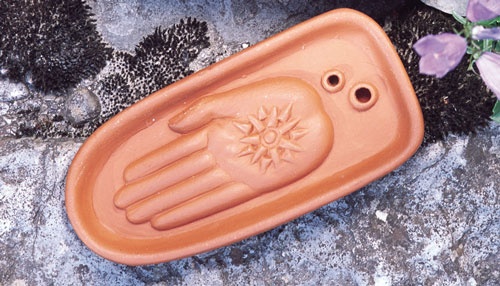 Dieser Halter ist besonders geeignet für die etwas dickeren tibetischen Räucherstäbchen ohne Bambusstab.