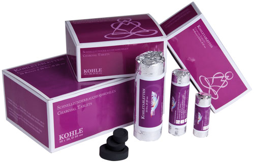 Weihrauch und Dhoops werden auf Holzkohle verbrannt. Am einfachsten hierfür eignet sich die Schnellzünder-Rauchfaßkohle. Sie ist einfach im Gebrauch, da sie sich - einmal angezündet - selbst durchzündet. Aber auch hier sollten wir darauf achten, dass die Kohle während des Zündvorgangs rundherum genügend Luft bekommt.