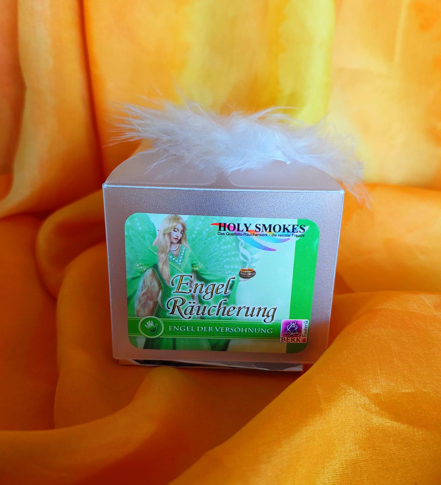 Die Engelräucherung ist liebevoll verpackt in einer rosa Box (Breite-Tiefe 6 cm x Höhe 5 cm).