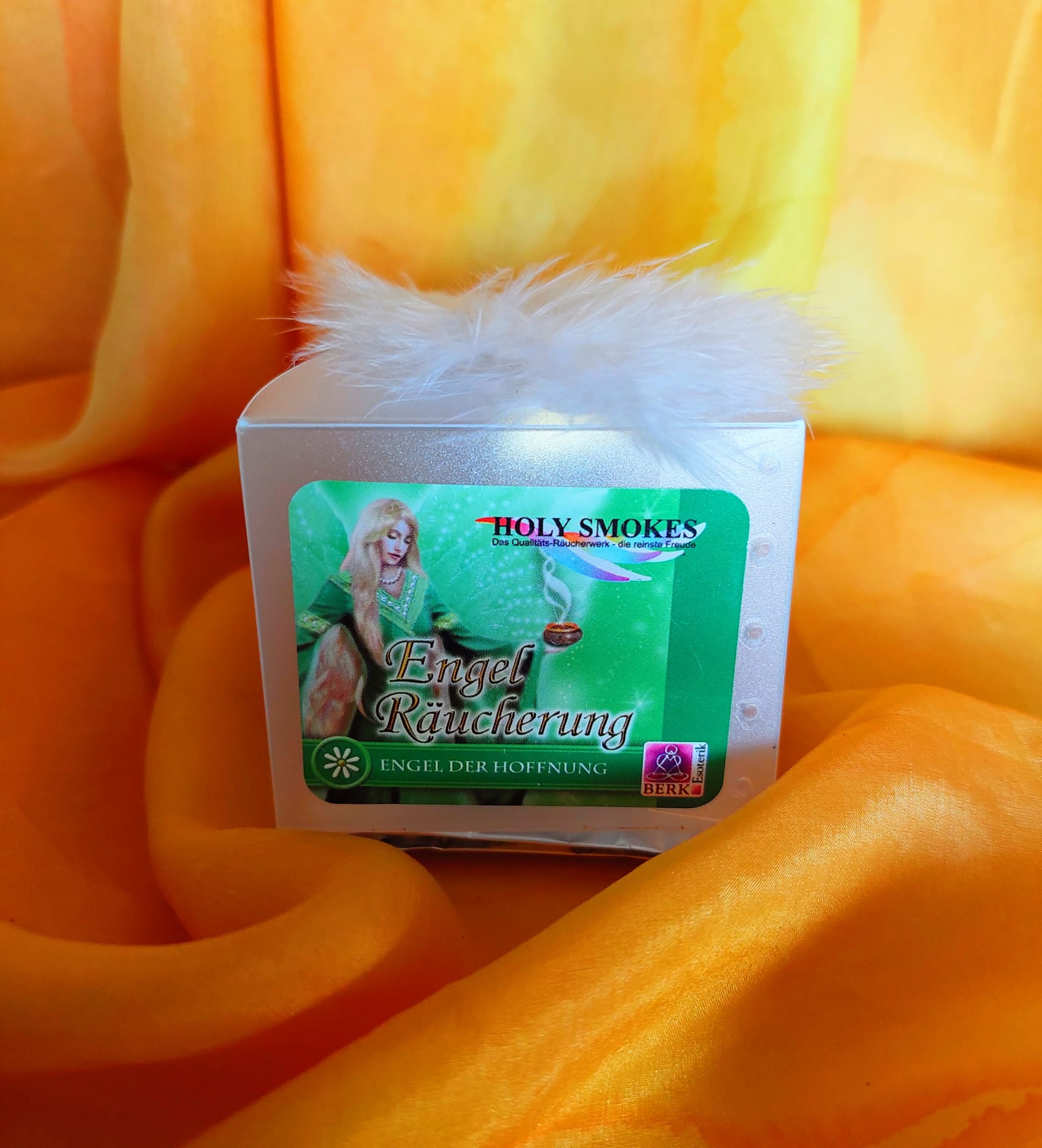 Die Engelräucherung ist liebevoll verpackt in einer rosa Box (Breite-Tiefe 6 cm x Höhe 5 cm).
