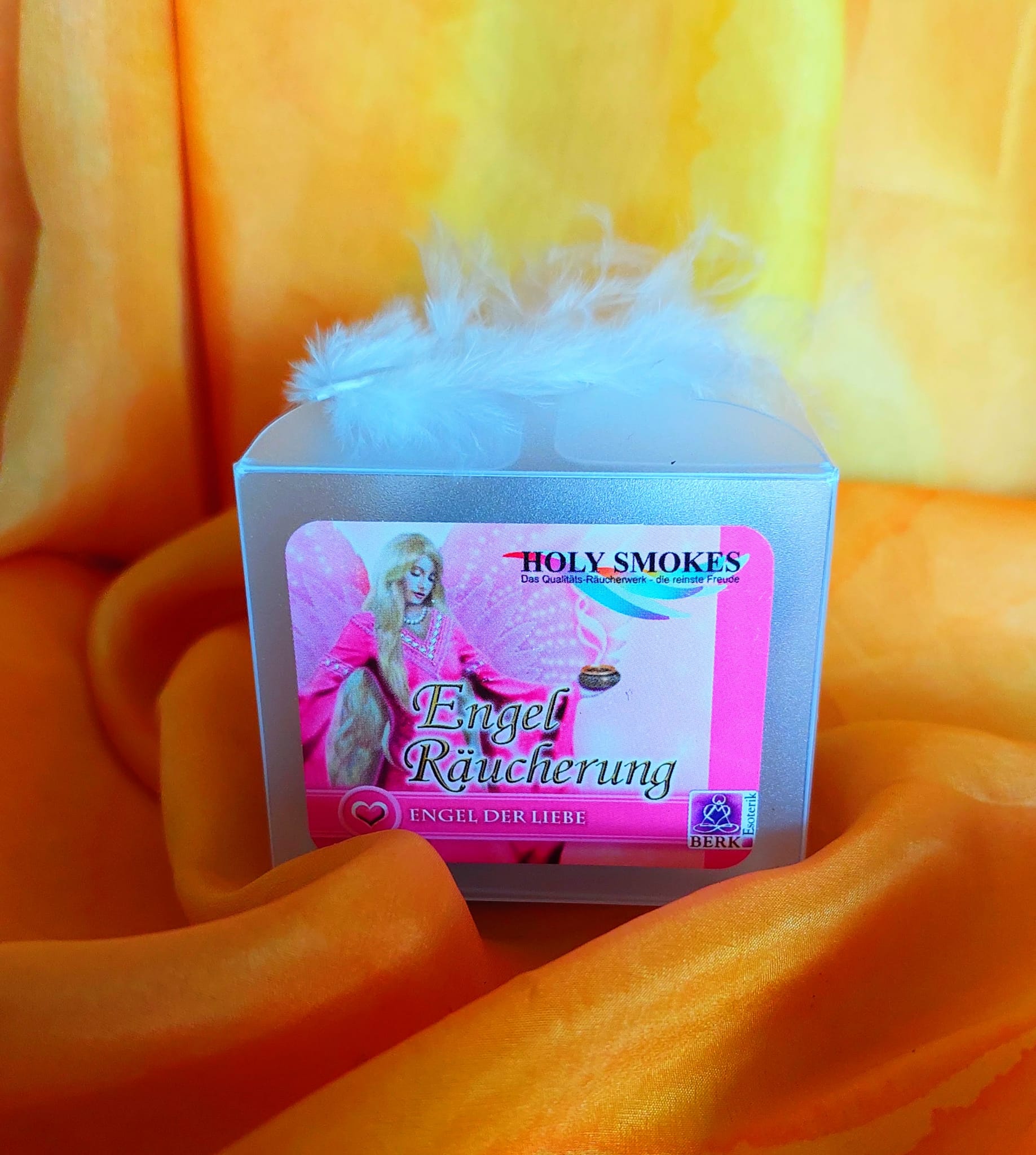 Die Engelräucherung ist liebevoll verpackt in einer rosa Box (Breite-Tiefe 6 cm x Höhe 5 cm).