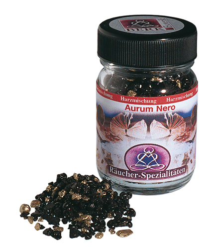 Ein schwarz-goldener Kirchenweihrauch. Lässt die tiefen Töne erklingen. Aurum Nero Bestandteile: Verschiedene Sorten Olibanum, Benzoe, Myrrhe, Balsam