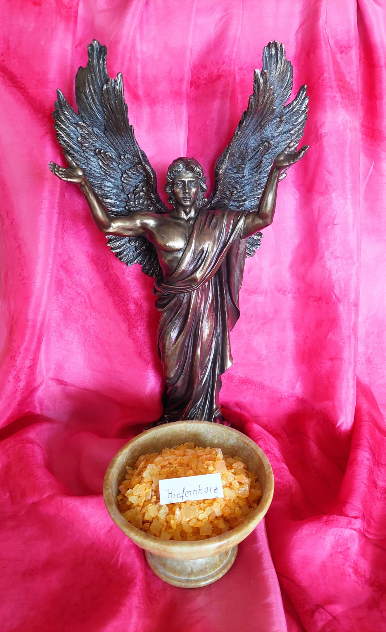 Kiefernharz wirkt stark reinigend und befreit unser Gemüt von Altlasten. Es vertreibt Melancholie und Trauer und schenkt uns ein Gefühl der Geborgenheit. Frohen Mutes sehen wir wieder das Licht des Lebens; Freude und Harmonie ziehen in unsere Seele ein. Ein sanfter, zurückhaltender Duft.