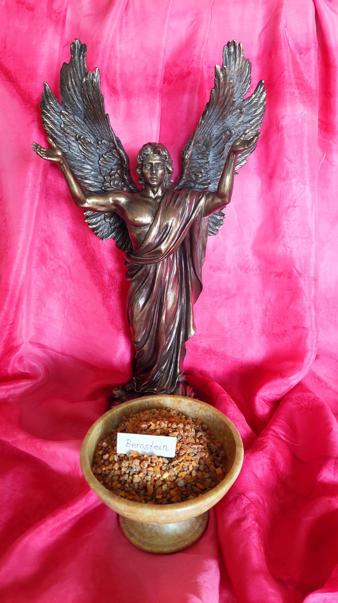 Bernstein trägt die Kraft alter Weisheit in sich. Es hat eine befreiende Wirkung, löst tiefsitzende Ängste auf und hilft uns negative Emotionen loszulassen. Es berührt unser Herz und bringt uns neue Energie und neuen Schwung. Unser eigenes, altes Wissen kann sich wieder offenbaren. Sein Duft ist balsamisch, harzig und zuweilen auch etwas streng. Ist der Sonne und den Göttern zugeordnet. Bringt Erneuerung, Herzenswärme und Selbstbewusstsein. Gold des Nordens. Hilft bei der Verarbeitung und Integrieren "alter Themen".