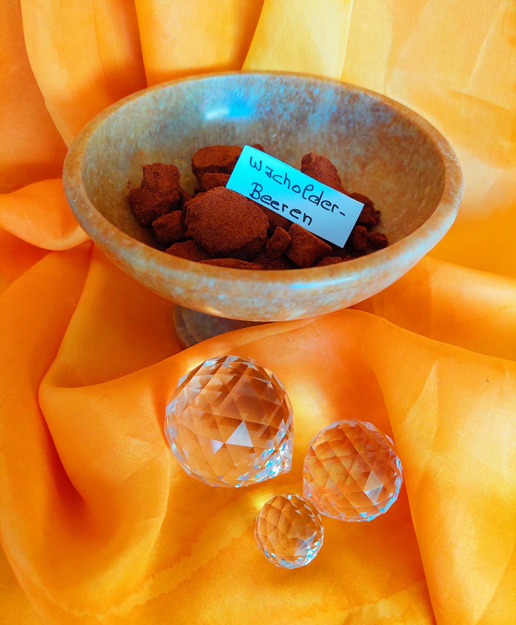Wacholder wird seit alters her als wertvolle Schutzpflanze gegen alles Negative angesehen. Er schützt, indem er Raum und Geist klärt und uns mit der nötigen Kraft erfüllt, Widrigkeiten zu meistern oder durch sie hindurchzugehen. Wacholder vermag die Seele zum Licht zu führen.Wacholderbeeren haben einen fruchtig-würzigen Duft und eine gedämpft feurige Energie.