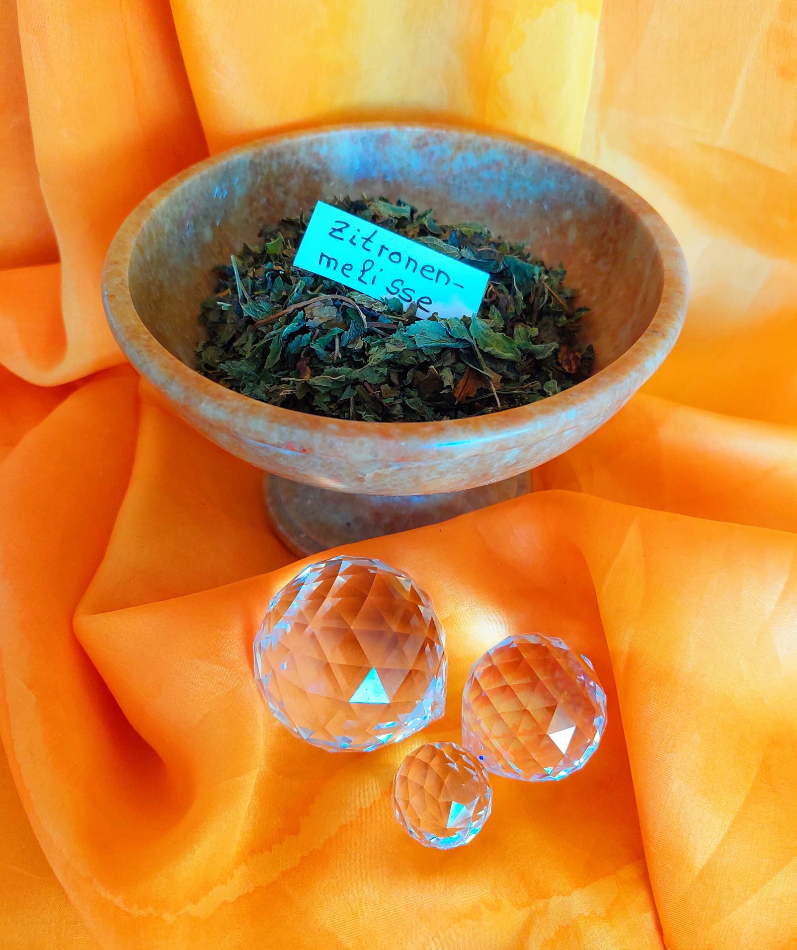 Leicht und beschwingt können wir mit der Zitronenmelisse geistig anstrengende Aufgaben meistern. Sie ermutigt uns dazu, konzentriert an der Sache zu bleiben, nicht aufzugeben und befeuert den Glauben an uns selbst. Stets zieht sie uns zurück auf den Pfad der Fröhlichkeit und Leichtigkeit. Besonders geeignet für Prüfungen, Erfolgswünsche und gegen Liebeskummer.