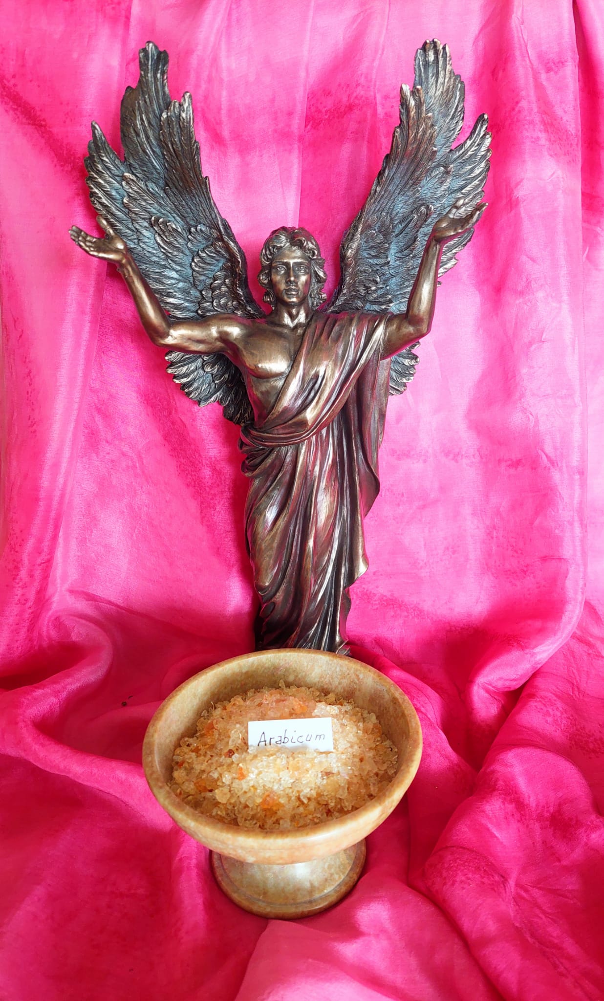 Gummi Arabicum stammt von verschiedenen Akazienarten. Es ist ein sehr feines Harz, welches harmonisierend und zentrierend wirkt. Es stärkt unser Gefühl von Geborgenheit. Sein Duft ist sehr mild, weswegen es gerne als Grundharz für Mischungen mit Kräutern verwendet wird. So können scharfe Räucherstoffe abgemildert werden.