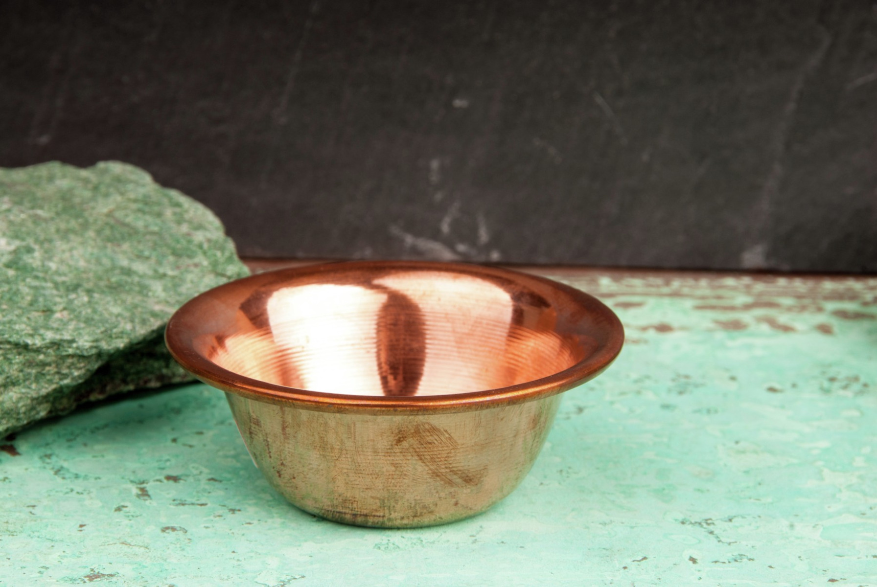 Dieses leichte Kupferschälchen wird in den östlichen Ländern vorwiegend als Phuja Schälchen verwendet. Ein Phuja ist eine Zeremonie an verschiedene himmlische Kräfte. Zu deren Ehren werden kleine Früchte, Zuckerstückchen oder auch Wasser in das Schälchen gefüllt. Da Kupfer desinfektionierende Eigenschaften vorweist und nach Gold am höchsten schwingt, ist dieses Schälchen besonders für Rituale aller Art geeignet. Zum Beispiel für ein Naturgeisterritual, bei dem man den Elfen und Feen ein Schälchen mit Milch oder Honig darbietet.