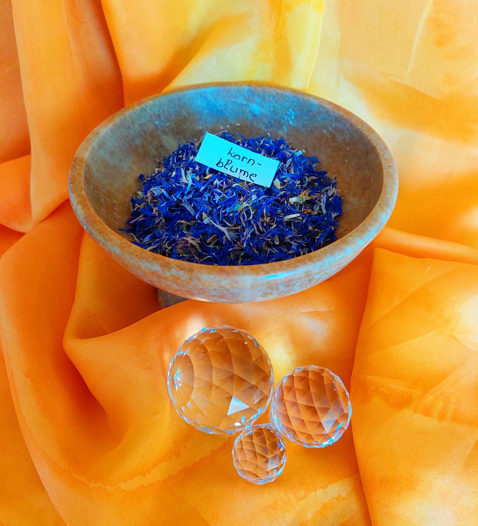 Die Kornblume ist ein wahrer Meister der Kommunikation. Sie hilft, uns klar auszudrücken und damit Missverständnisse zu vermeiden. Sie wirkt auf das 3. Auge und lässt uns dadurch oft auch die tieferen Gründe für ein Geschehen sehen. Durch ihren lieblichen, aromatischen Duft wird sie auch in Liebesräucherungen verwendet.