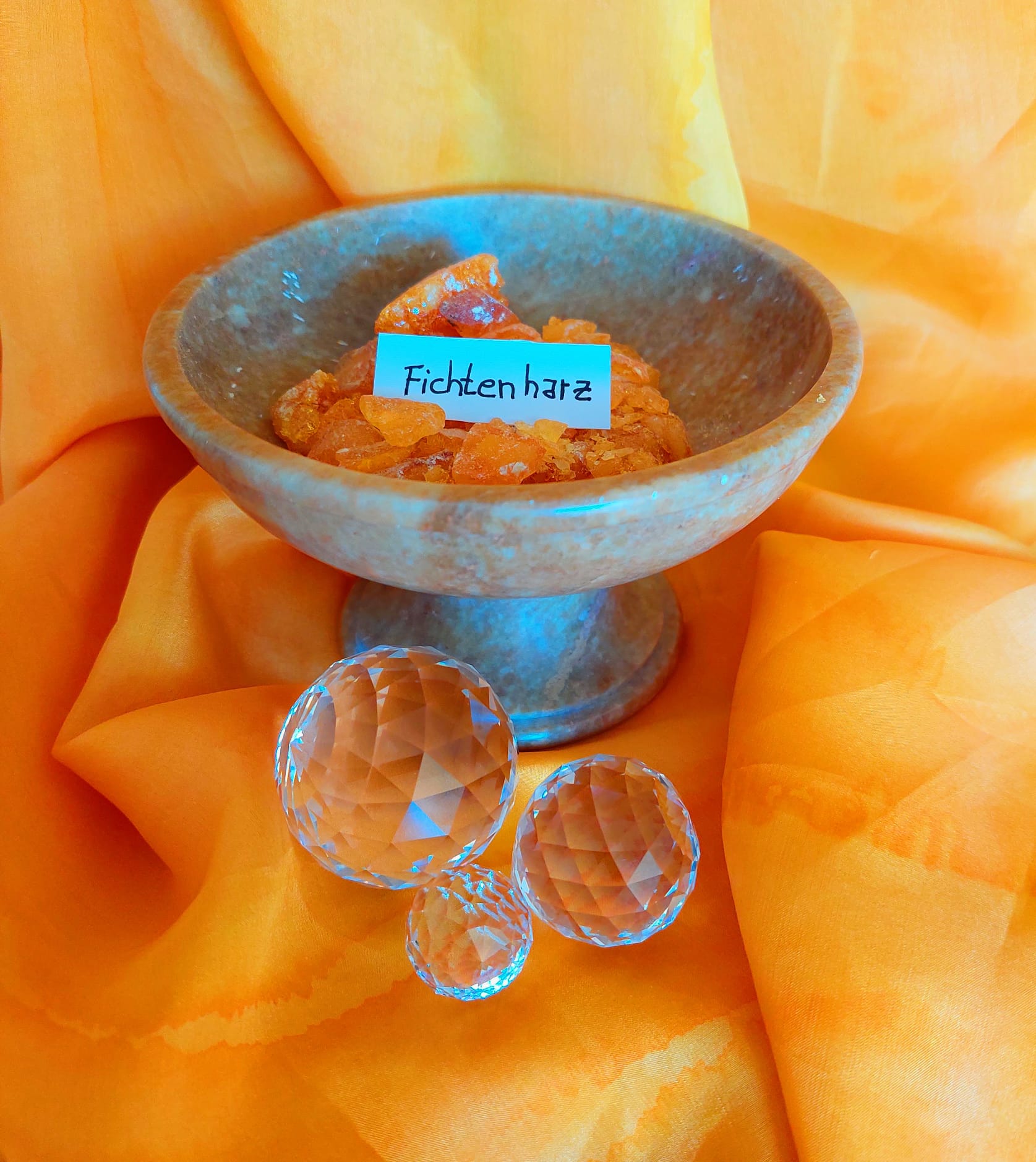Fichtenharz reinigt die Atmosphäre und schützt vor negativen Einflüssen. Es ist besonders dort sinnvoll, wo Altes losgelassen werden muss um Neuem Platz zu schaffen. Gleichzeitig erhöht es unsere Achtsamkeit und schärft den Blick auf das Wesentliche. Es verströmt beim Räuchern einen harzigen, waldigen Duft.
