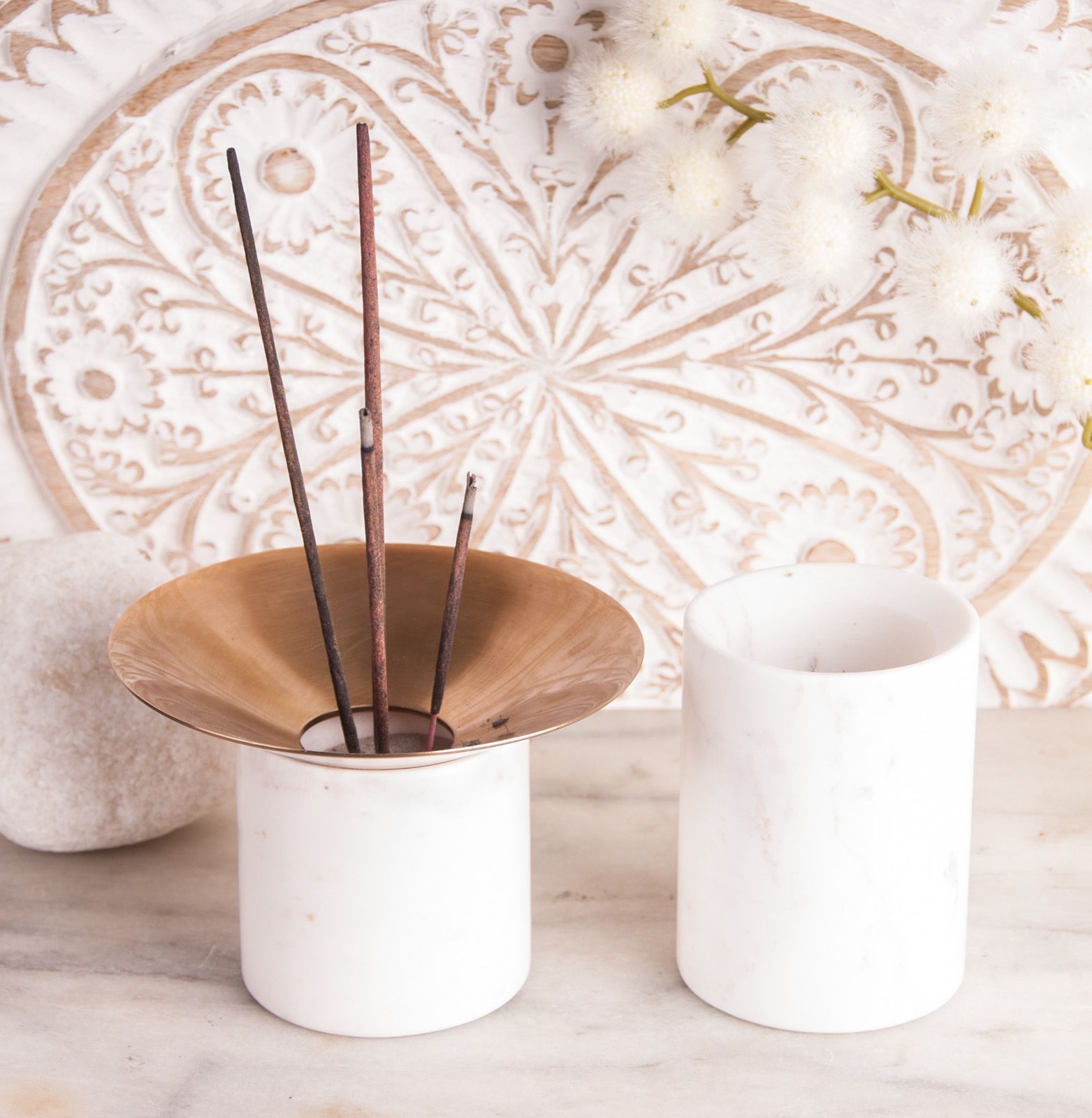 Diese Marmorsäule besticht mit ihrer schlichten Eleganz. Die Anmut und Reinheit des weißen Marmors verleiht dem Raum etwas Besonderes. Zusammen mit dem Aschetrichter und etwas Räuchersand (beides nicht enthalten) ergibt sich ein kostbarer Räucherstäbchenhalter von zauberhafter Schönheit.